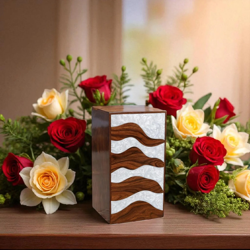 Handmade Sheesham Wood Cremation Urn Resin Wave Inlay Memorial Keepsake Box Cremation urns For Adult Ashes