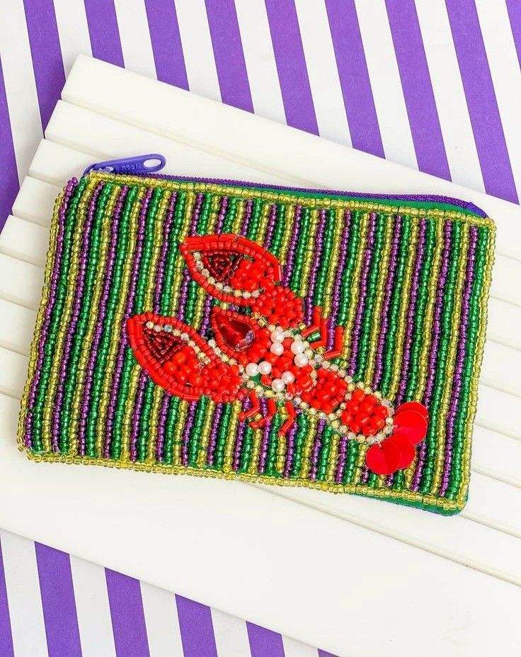 Handmade High Quality Shell Leopard Beaded Nylon Eco-Friendly Women's Clutch Zipper Coin Purse Style Embroidered Cosmetic Bag