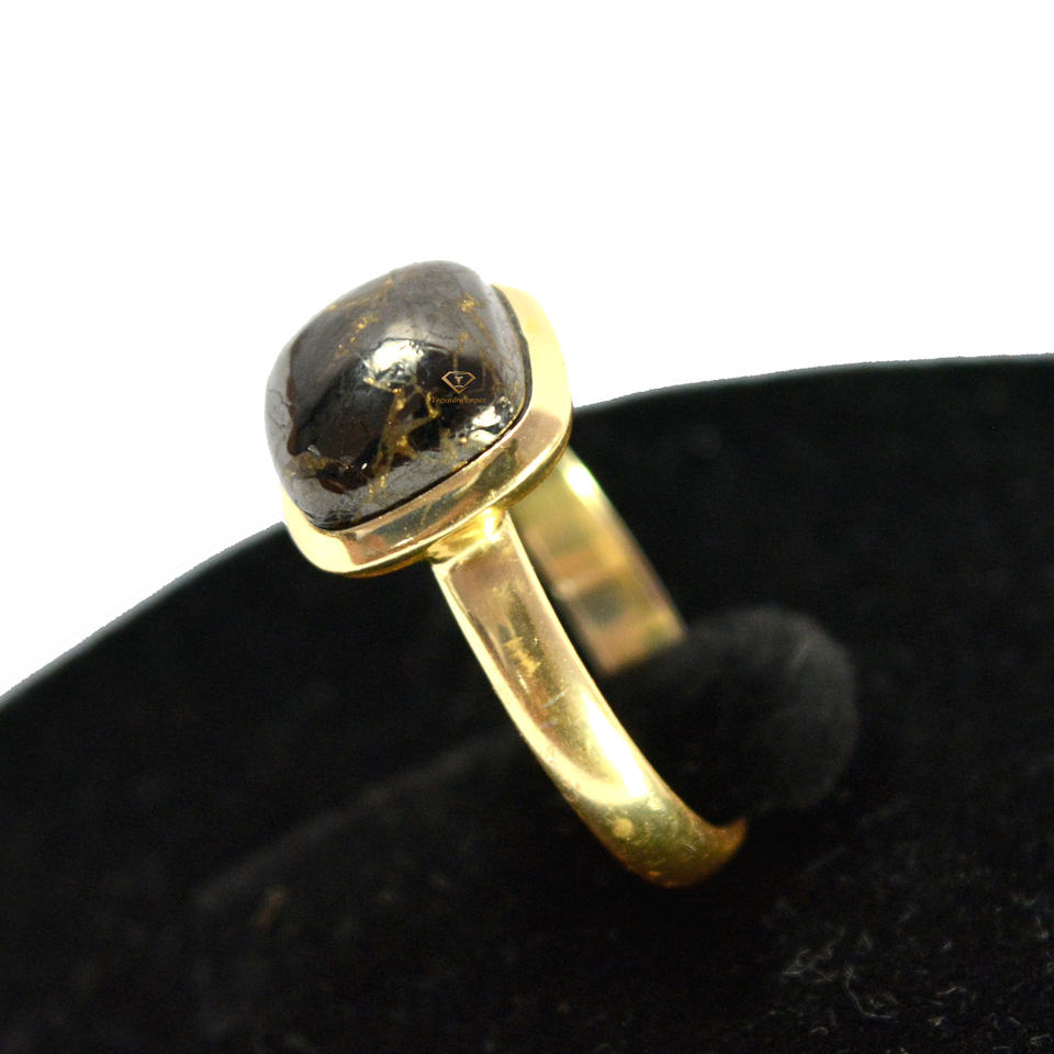 Handmade Shungite Gemstone Sterling Silver Ring 18K Gold Plated Cushion Shape Wedding Jewelry Wholesale