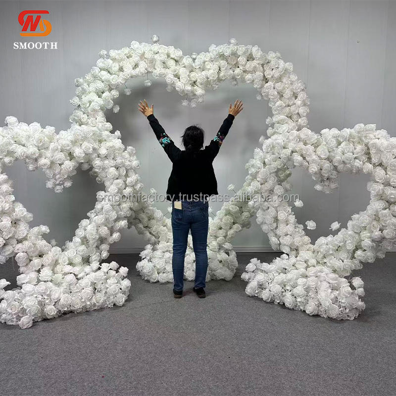 Handmade Silk Smooth Fantasy Floral Wedding Backdrop Heart-Shaped White Rose Flower Arch Customizable Outdoor Proposals Soft