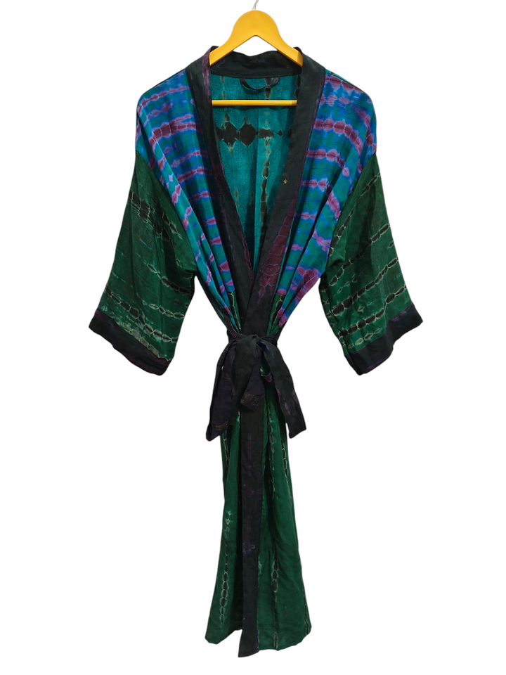 Handmade Silk Tye Dye Kimono Sari Robe Bridal Gown Maternity Gown Gift Robe Beach Party Wear Indian Printed Silk Sari Kimono,