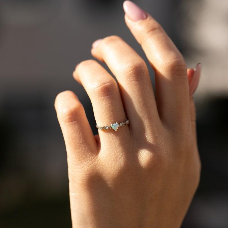 Handmade 925 Sterling Silver Boho Style Ring with Opal Gemstone Trending Jewelry for Women's Wedding Gift for Her
