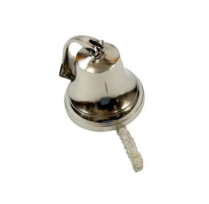 Handmade Silver Finish Nautical Wall Decor Polished Brass Ship Bell with Bracket Rope Lanyard Home Use & Gifts Metal Material