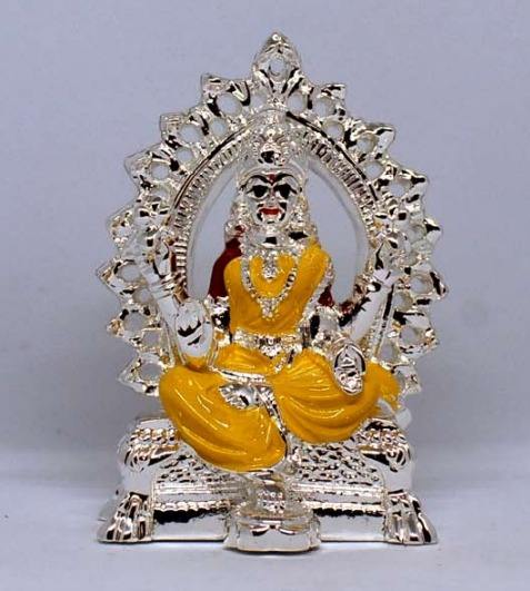 Handmade Silver Goddess Durga Idol Figurine Artistic Yellow Dress Design Stainless Steel for Wedding Home/Temple Vastu Decor