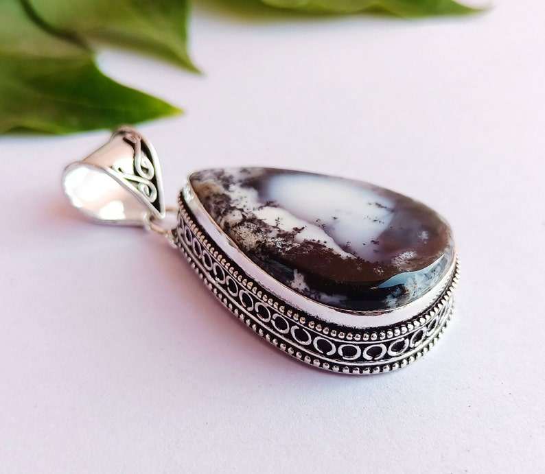 Handmade Silver Plated Dendrite Opal Pendant Necklace Unique Jewelry Gift For Her Birthday Anniversary Pendant
