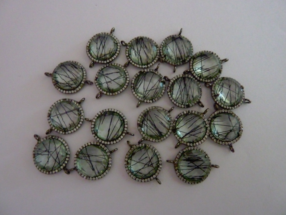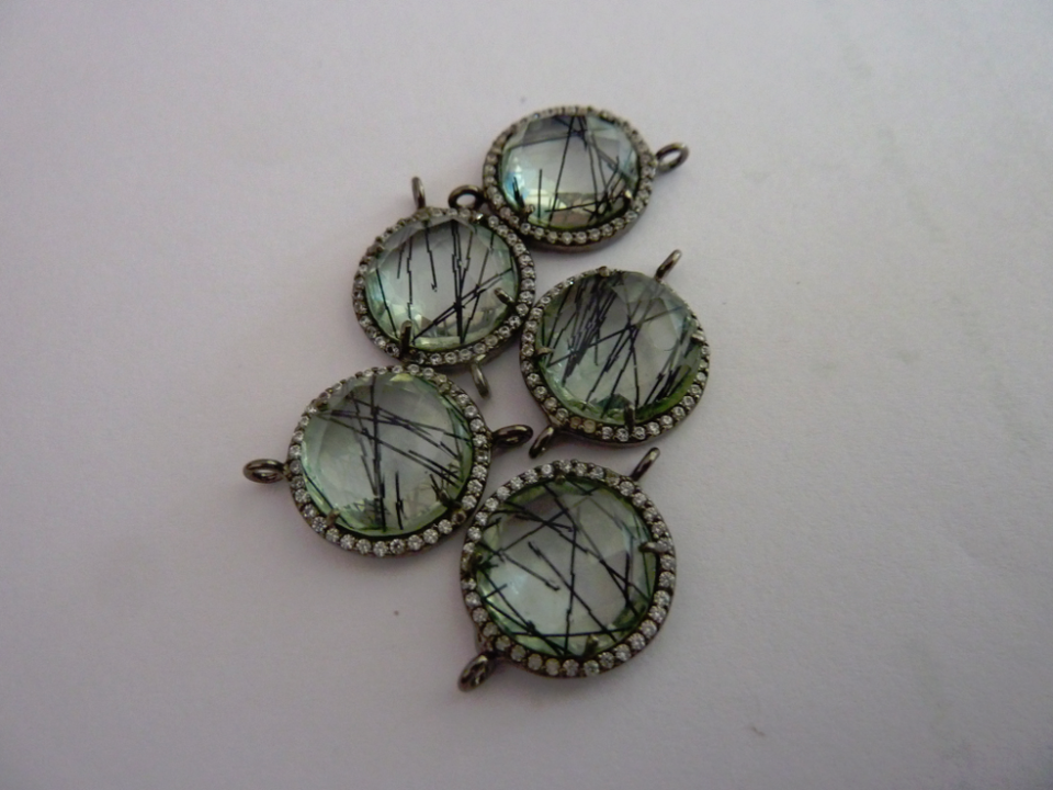 Handmade Silver Rutile Quartz Gemstone Connector Gold Plated Pave Diamond for Wedding Party Jewelry Design Christian Symbol