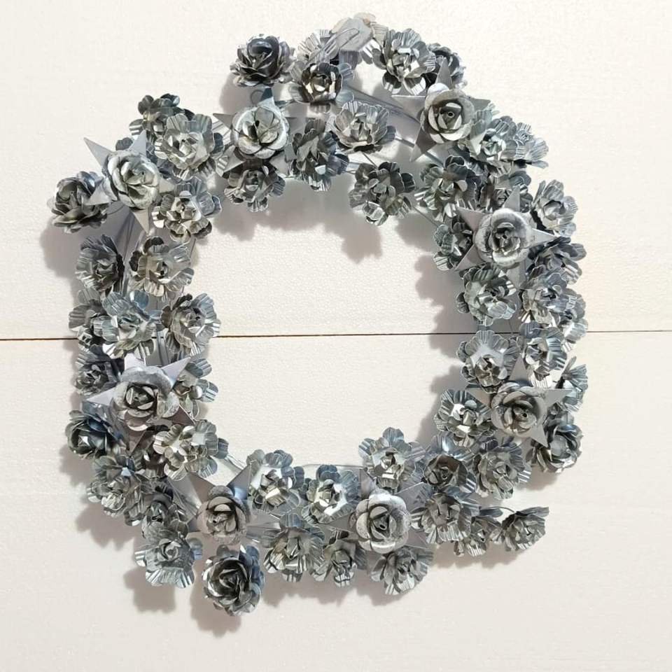 Handmade Silver Star Wall Garland for Holiday Home Decoration Antique Christmas Front Door Metal Wreath