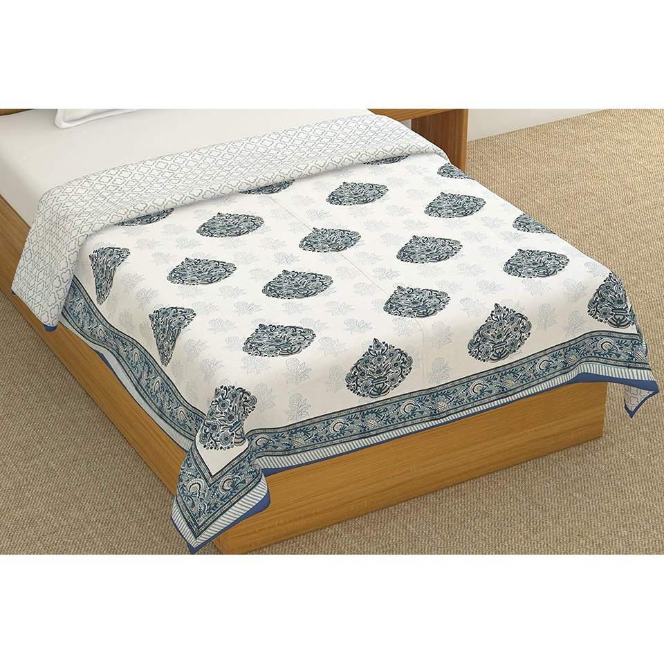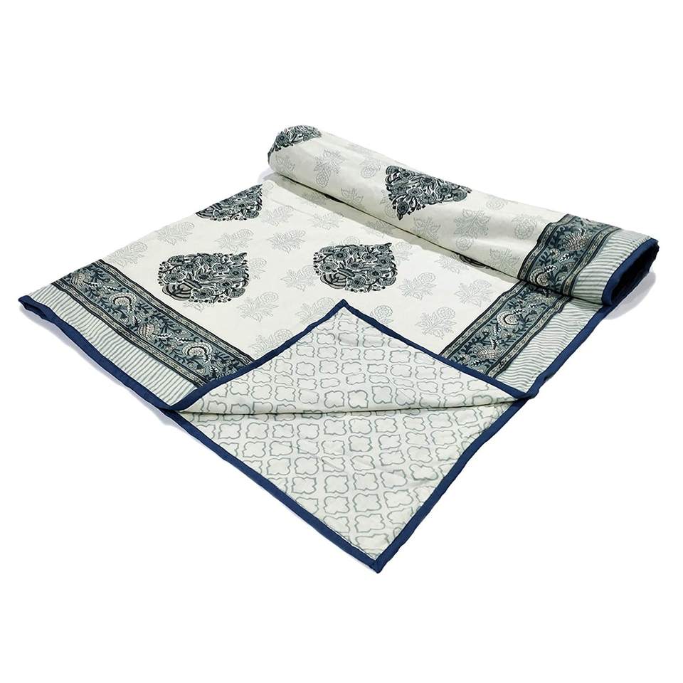 Handmade Single Bed Cotton Dohar/Blanket Grey Gamla Motifs Winter Bedspreads Single Bed Hand Block Printed Quilt Rajasthan