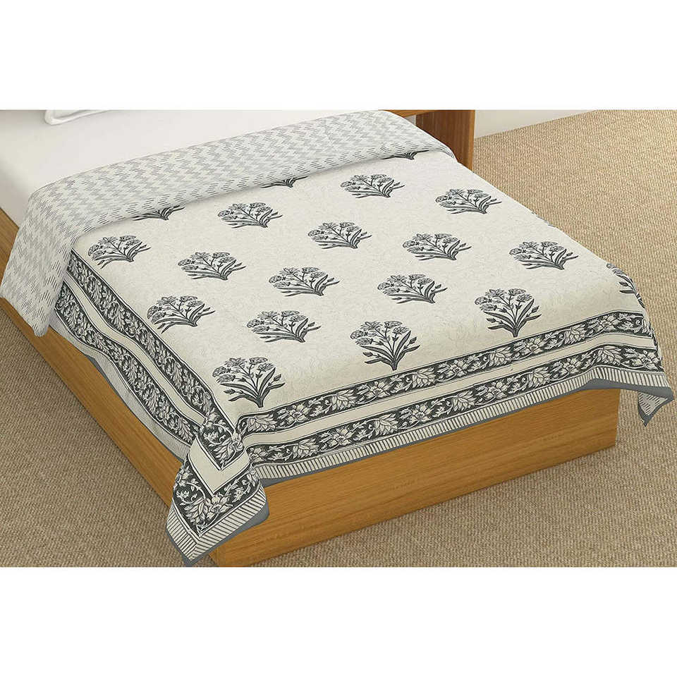 Handmade Single Bed Size Cotton Dohar/Blanket Grey Boota Motifs Winter Bedspreads with King Size Double Technics Block Printed