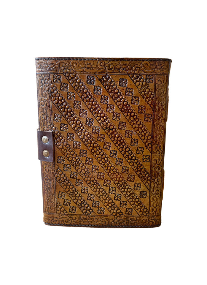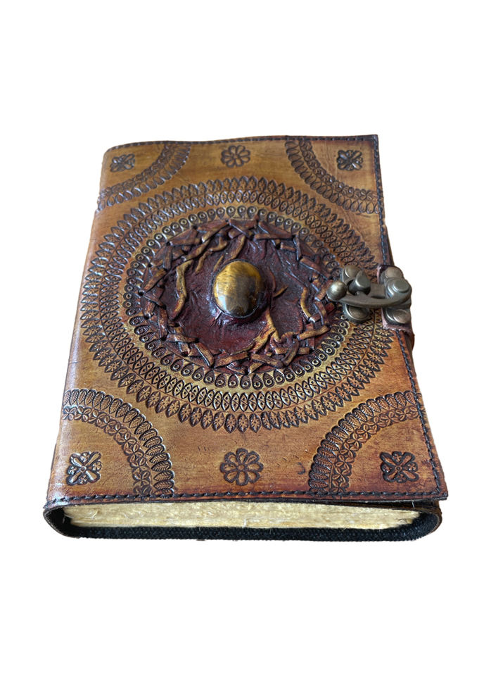Handmade Single Yellow Stone Studded Stitched Antique Designs 100% Genuine Leather Hardcover Notebook With Blank Deckle Art Page