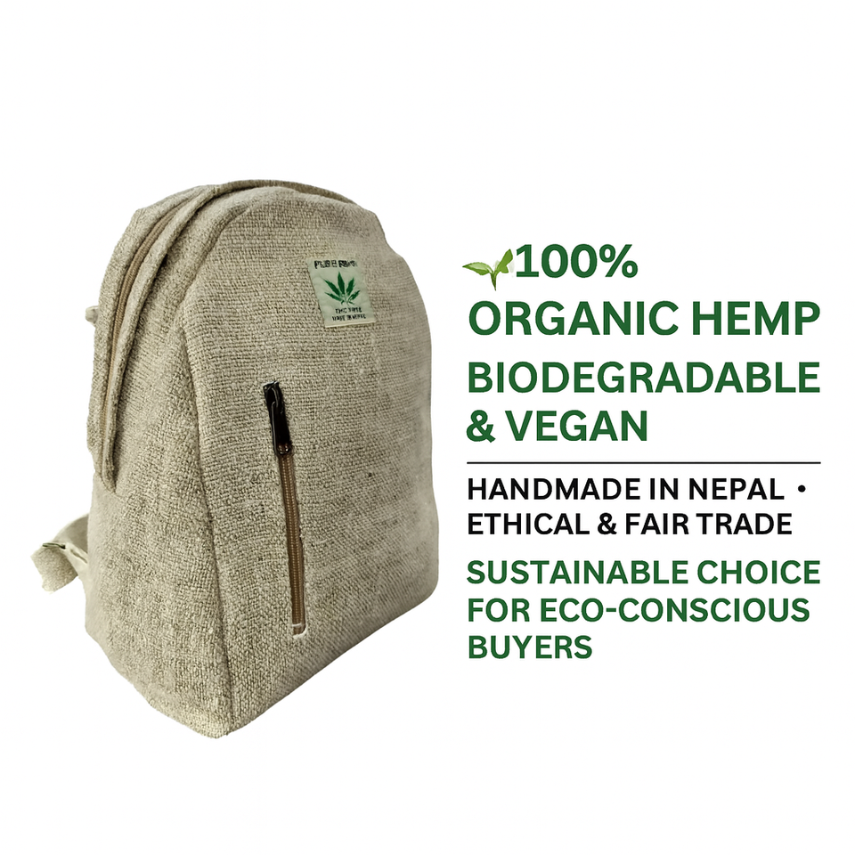 Handmade Small Backpack Triangle Pouch Pure Hemp Eco-Friendly Durable Travel Bag for Everyday Use Cotton Lining Made Nepal