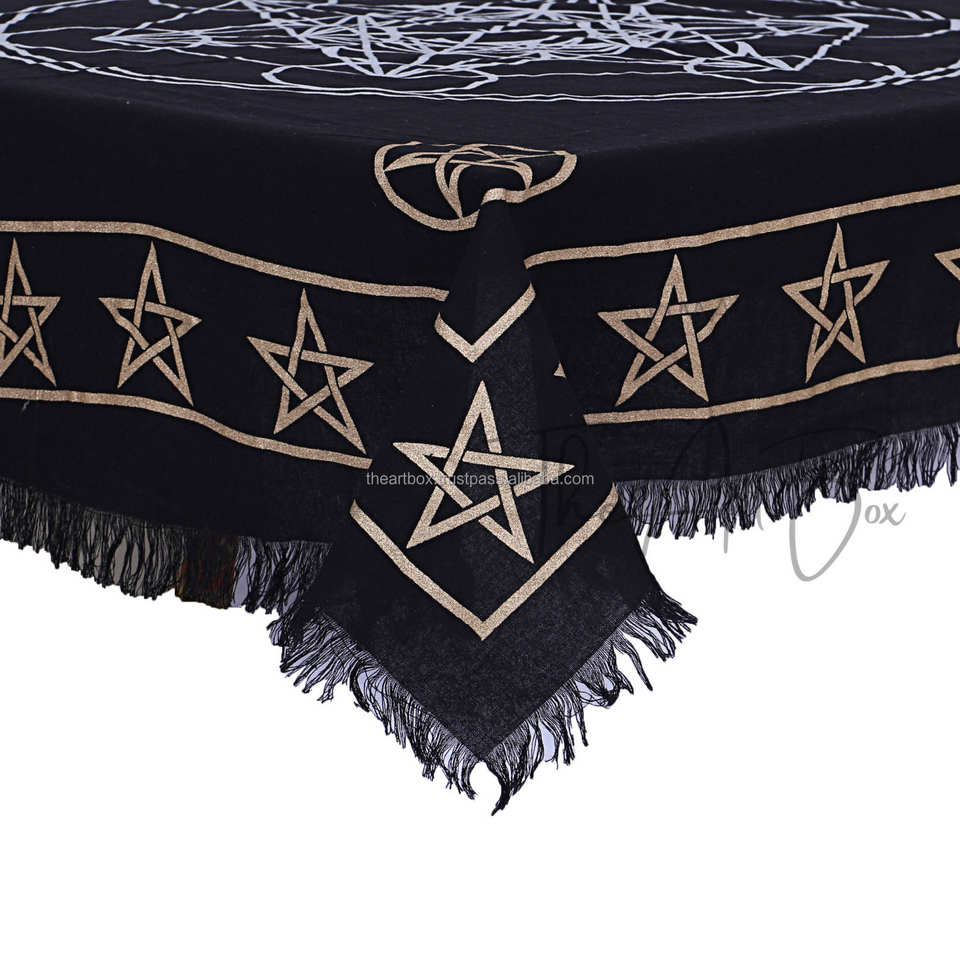 Handmade Small Christian & Hindu Religious Cotton Printed Table Runner Black Altar Cloth for Home Wedding & Puja Chowki Aasan