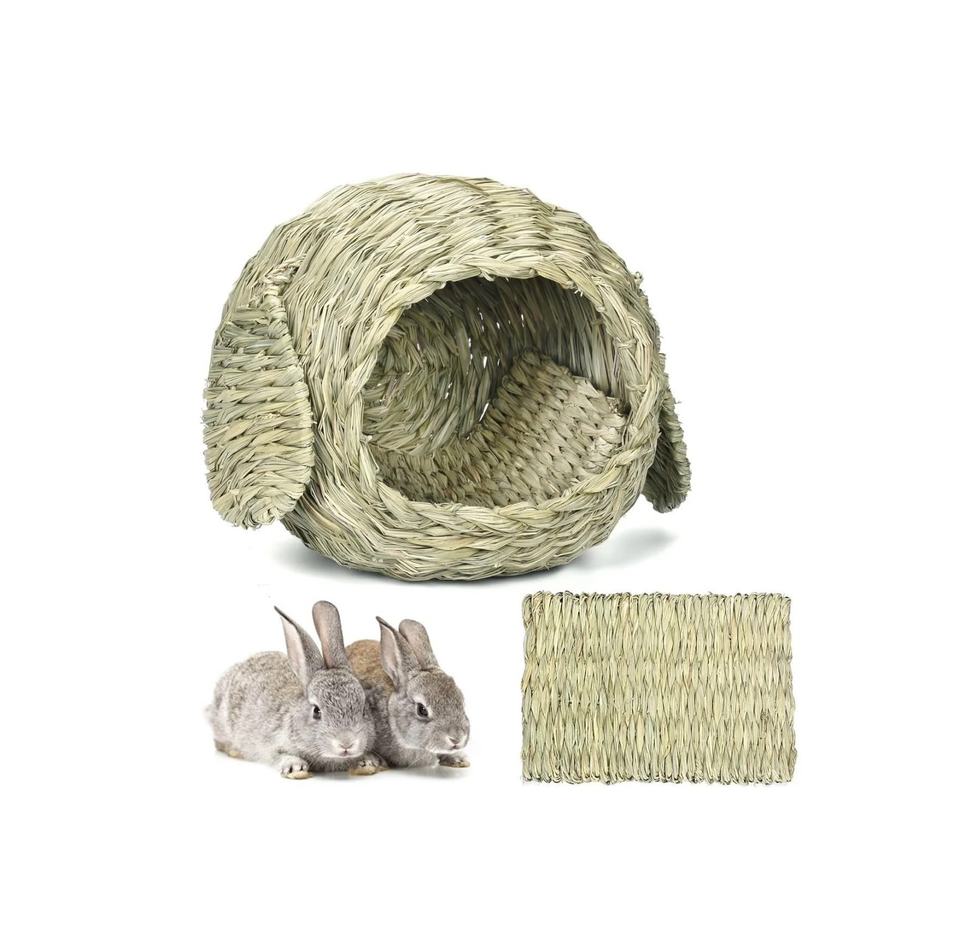 Handmade Small Wood Rabbit Nest Folded Grass House for House Rabbit Totoro Hamster Guinea Pi/ Straw Pet House Furniture