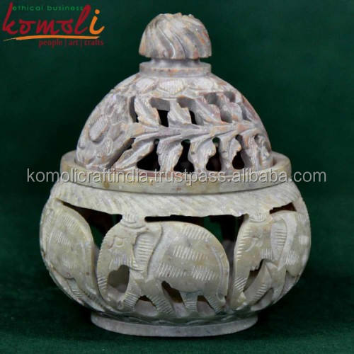 Handmade Soapstone Carving Lamp Stone Candle Holder for Tealights, Decorative Home Accent, Rustic Handcrafted Decor