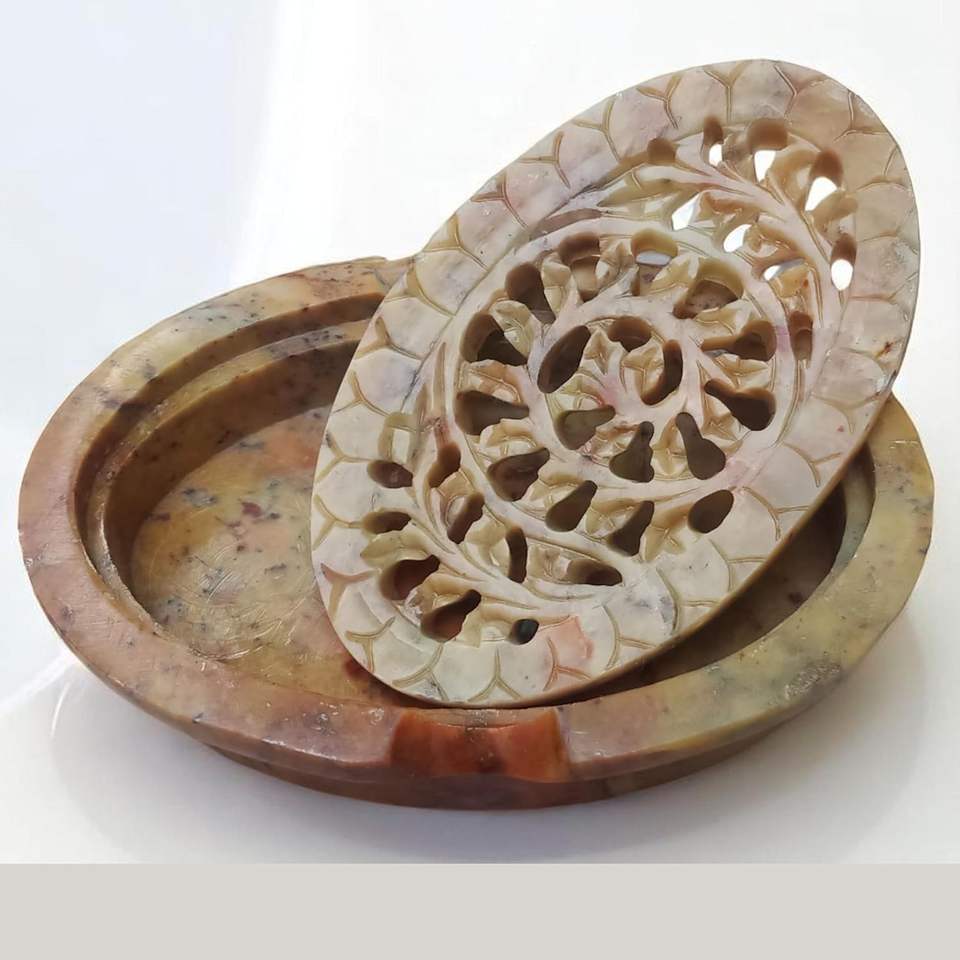 Handmade Soapstone Soap Dish Polished Marble Holder, 4.75 Inch Carved Tray for Bathroom, Sink, Shower Decor