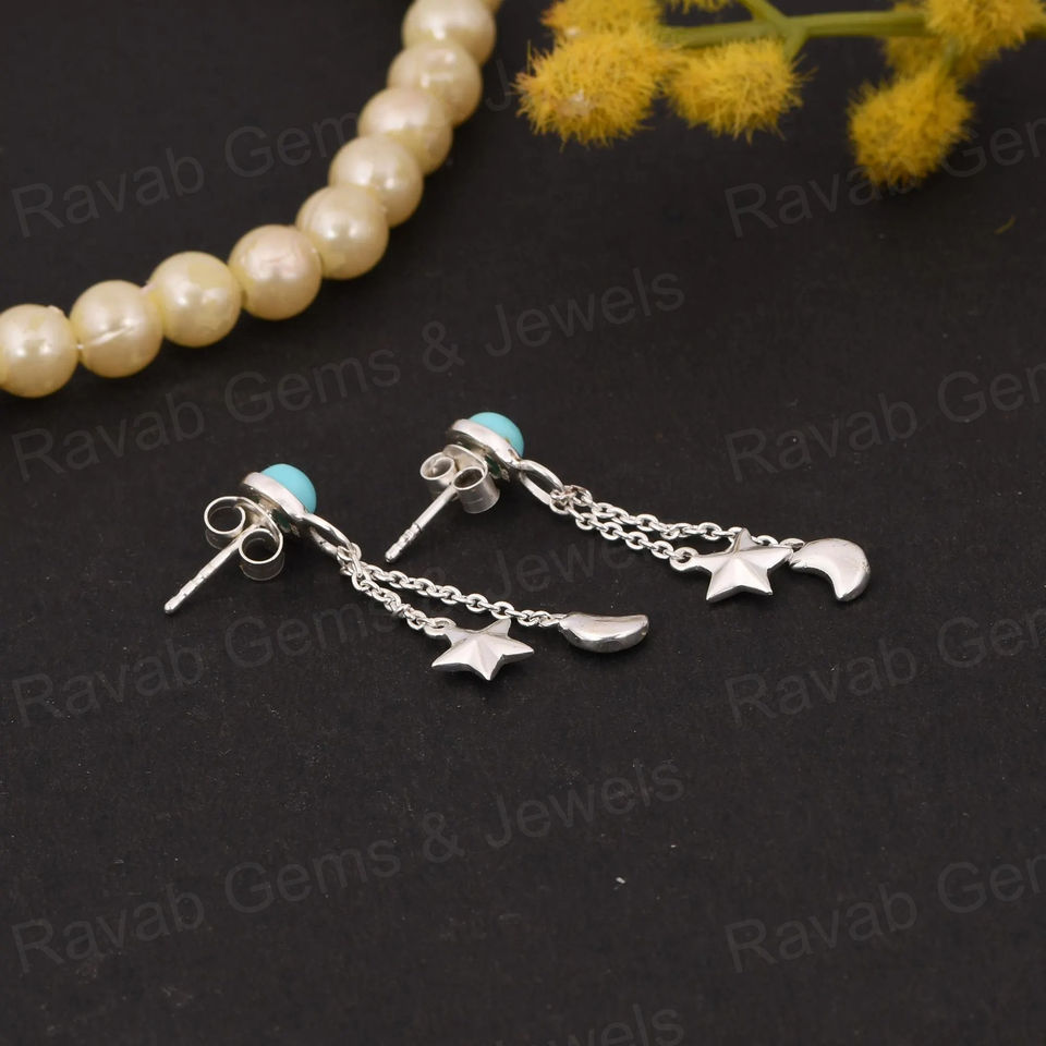 Product Name:Arizona Turquoise Long Chain Drop Star Moon Charm Dangle Earrings