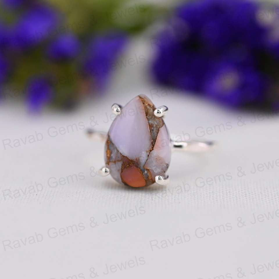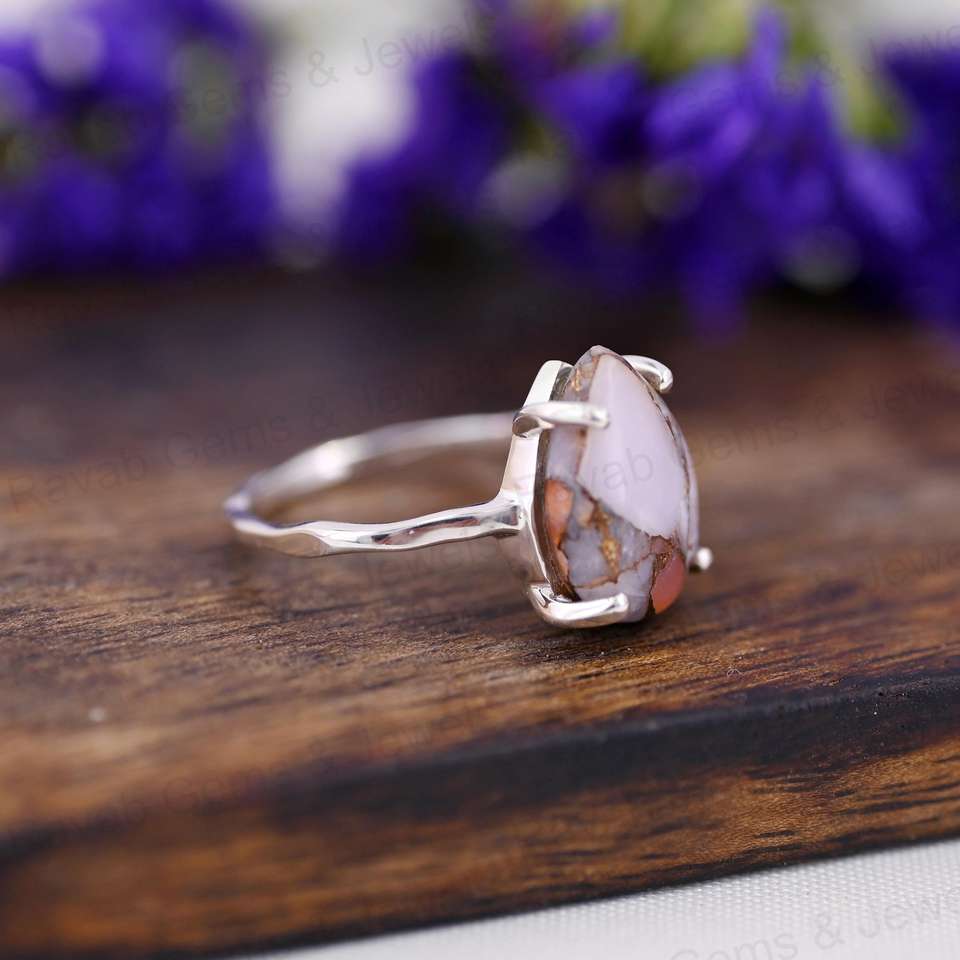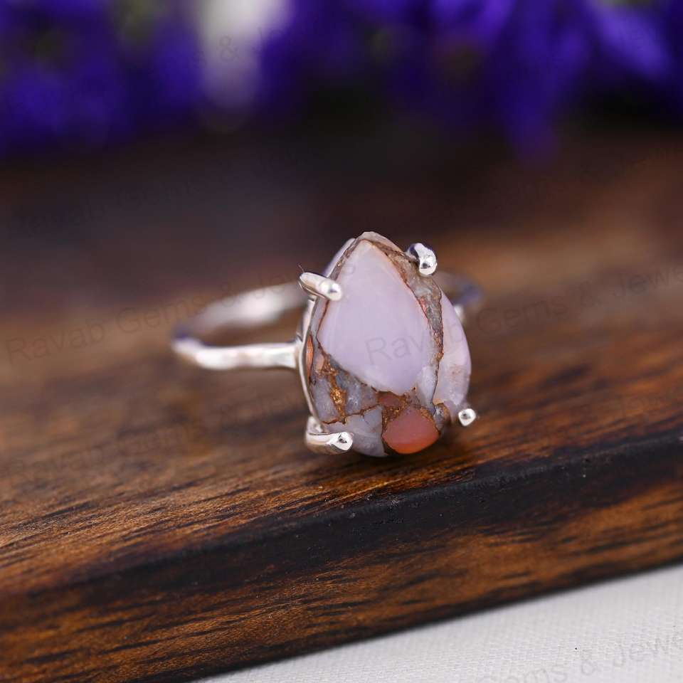 Product Name:Natural Pink Opal Copper Silver Gemstone 925 Silver Prong Ring