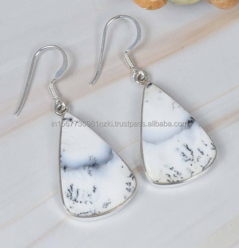 Handmade Solid 925-Sterling Silver Dendrite Opal Dangle Earrings, Teardrop Gemstone Earring, Wedding Gift For Her