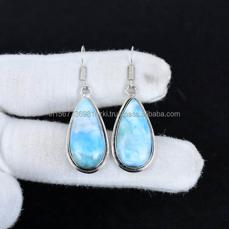 Handmade Solid 925 Sterling Silver Earrings - Natural Blue Gemstone Jewelry for Her, Mom, Wife - Handmade Gift for Her