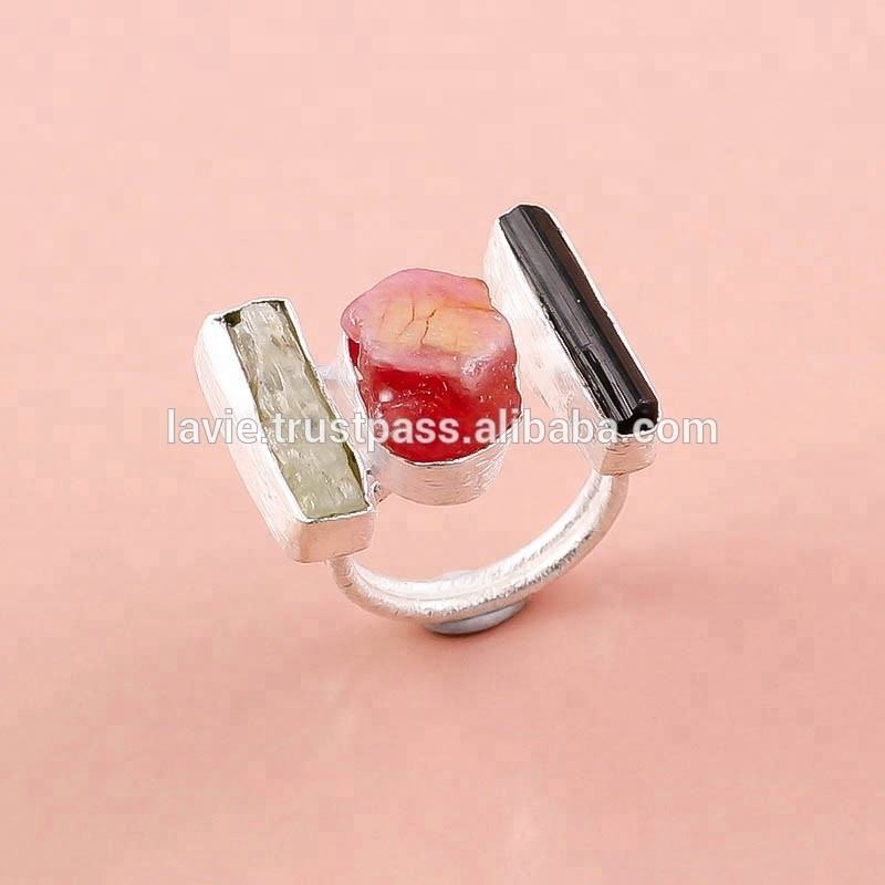 Handmade Solid 925 Sterling Silver Ruby Ring Natural Black Tourmaline Classic Indian Wedding and Party Jewelry for Women Girls