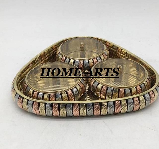 Handmade Solid Brass Dessert Serving Bowls With Tray Finest Quality Medium Size Dates Nuts Bowls by Home Arts