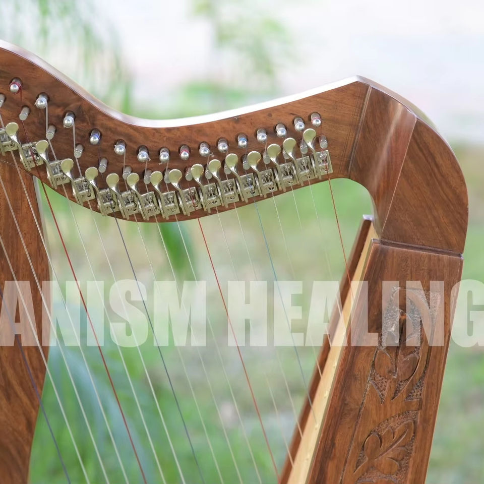 Handmade Solid Wood Celtic Harp | Professional Lever Harp with Carved Frame | Acoustic String Instrument