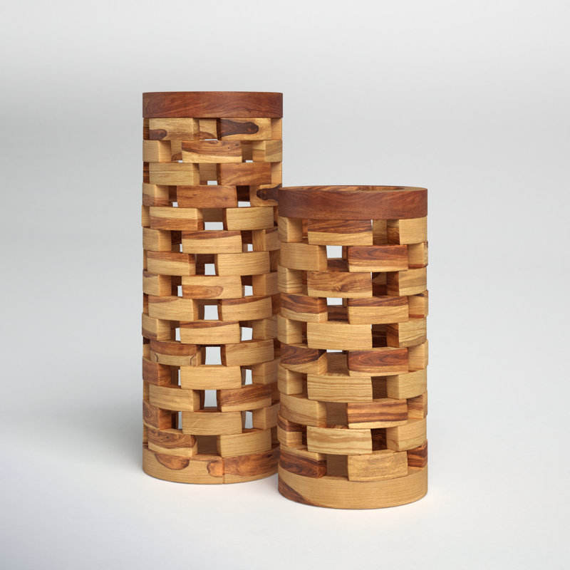 Handmade Solid Wood Floral Decor Vase Bamboo & Wooden Home Decor Table Toppiece