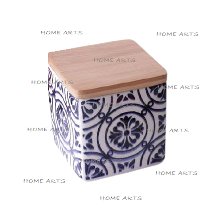 Handmade Printed Wood Salt Storage Box Set Of 3 Different Size Tea Sugar Jar Canister At Attractive Price