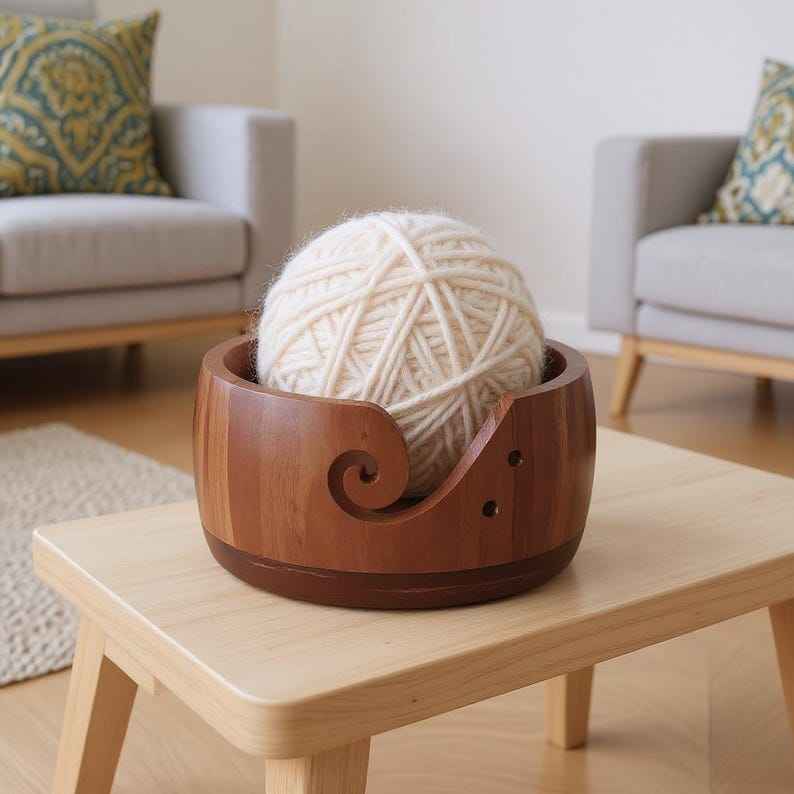Handmade Solid Wooden Portable Yarn Bowl | Smooth Polished Knitting Yarn Holder Spiral Cut for Tangle-Free Use Eco-Friendly