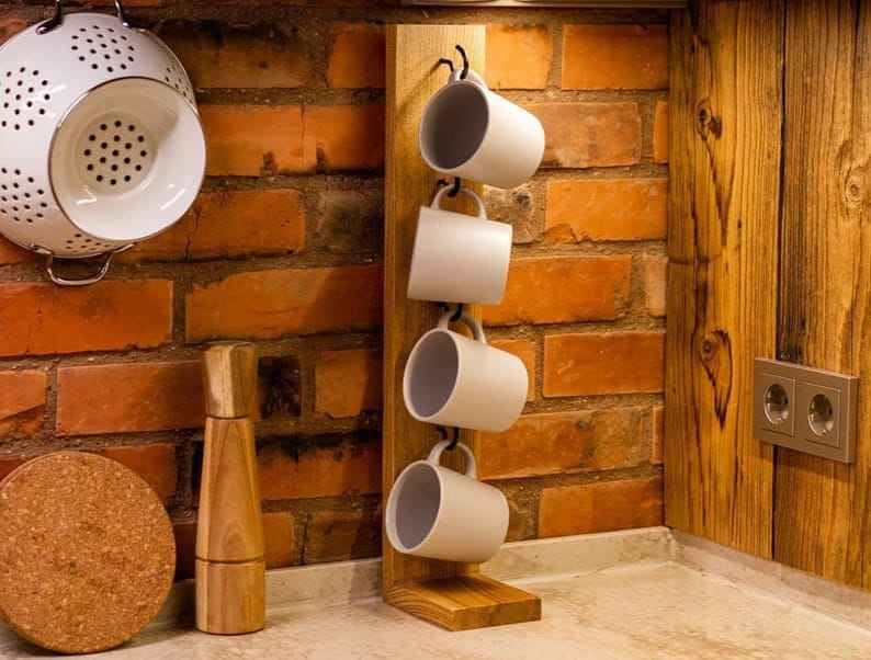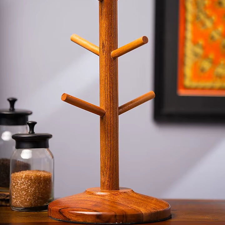 Handmade Luxury Solid Wooden Mug Rack Tree Stand Eco-Friendly Cup Organizer with Customizable Options for Home Use