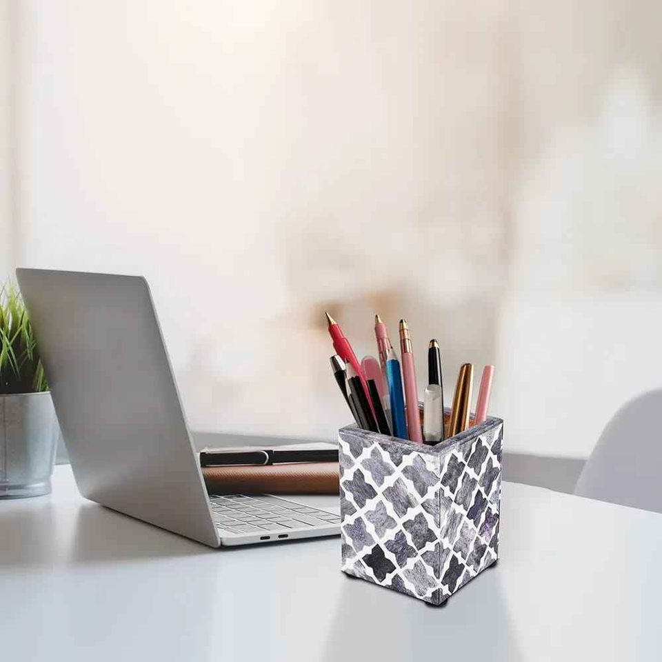Handmade Square Bone Inlay Art Deco Adjustable Pen Holder Decorative Stationery Organizer for Desk Office Multi-piece Package