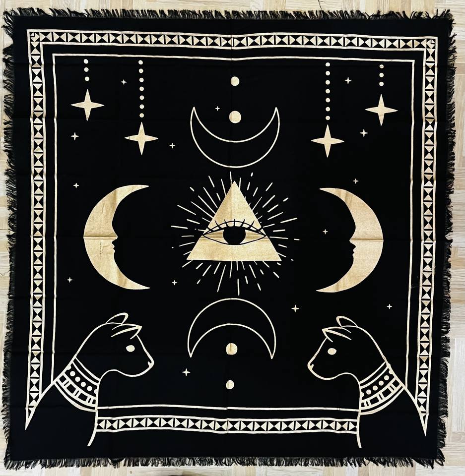 Handmade Square Moon Pentagram Animal Print Black Silver Witchcraft Simple Eco-Friendly Cotton Tarot Spread Indian Table Cover