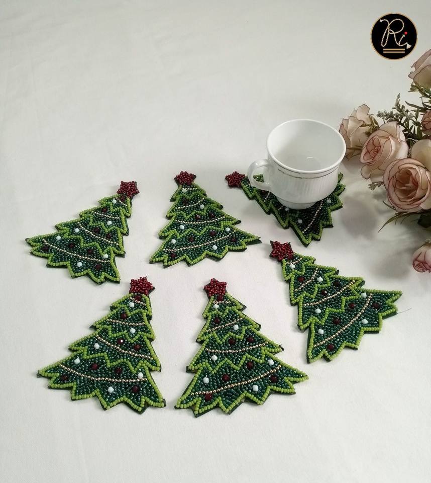 Handmade Square Shape Beaded Coasters Set Basically Use In Christmas Festival Buy Direct From Supplier At Bulk Price