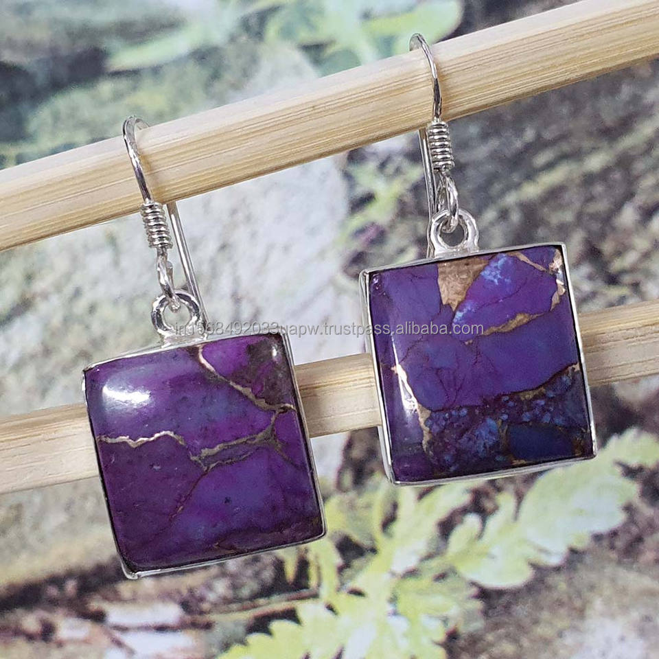 Product Name:Purple Copper Turquoise 925 Sterling Silver Dangle Earrings