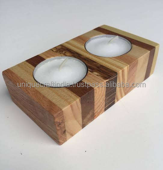 Handmade Square Wood Candle Holder Rustic Home Decor & Christmas Gift Tealight & Pillar Stand