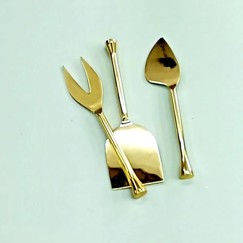 Handmade Stainless Steel Gold Polished Cheese Knife Set With Brass Handmade Design Handle Cheese Tools Set at Reasonable Price