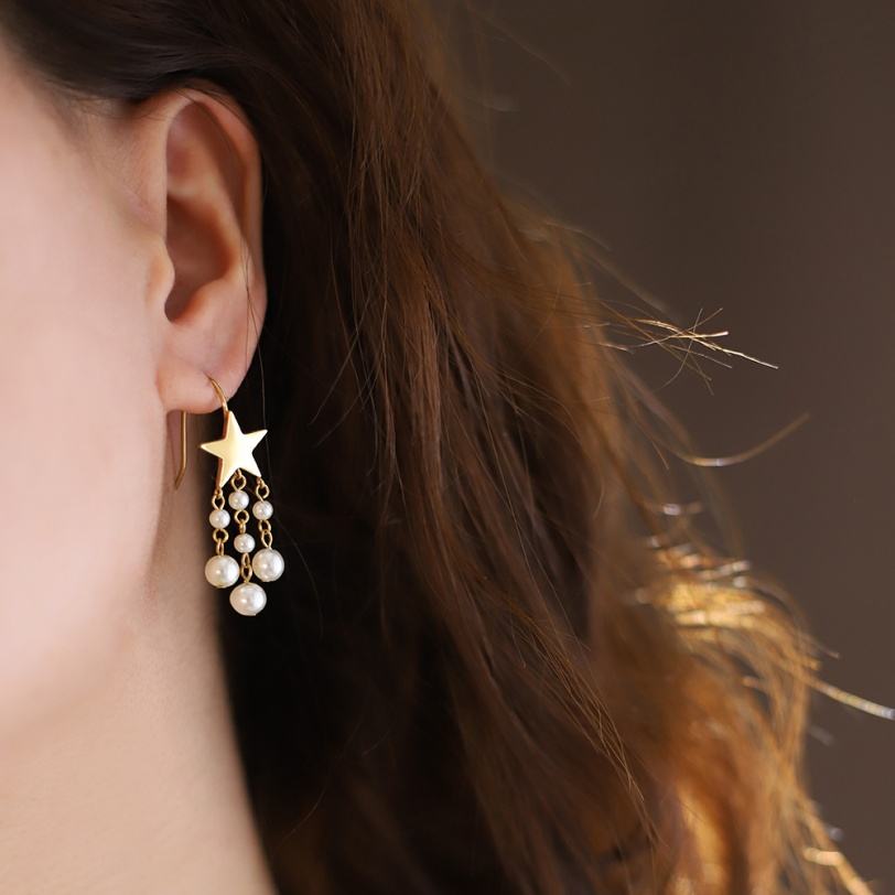 Handmade Stainless Steel Pentagonal Star Earings Meteor Shower Pearl Starry Tassel Ear Hook Fashionable Hoop Earrings Parties