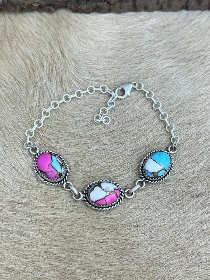 Handmade Sterling Silver Chain Bracelet With Cotton Candy Turquoise Unique Gemstone Jewelry Gift For Women