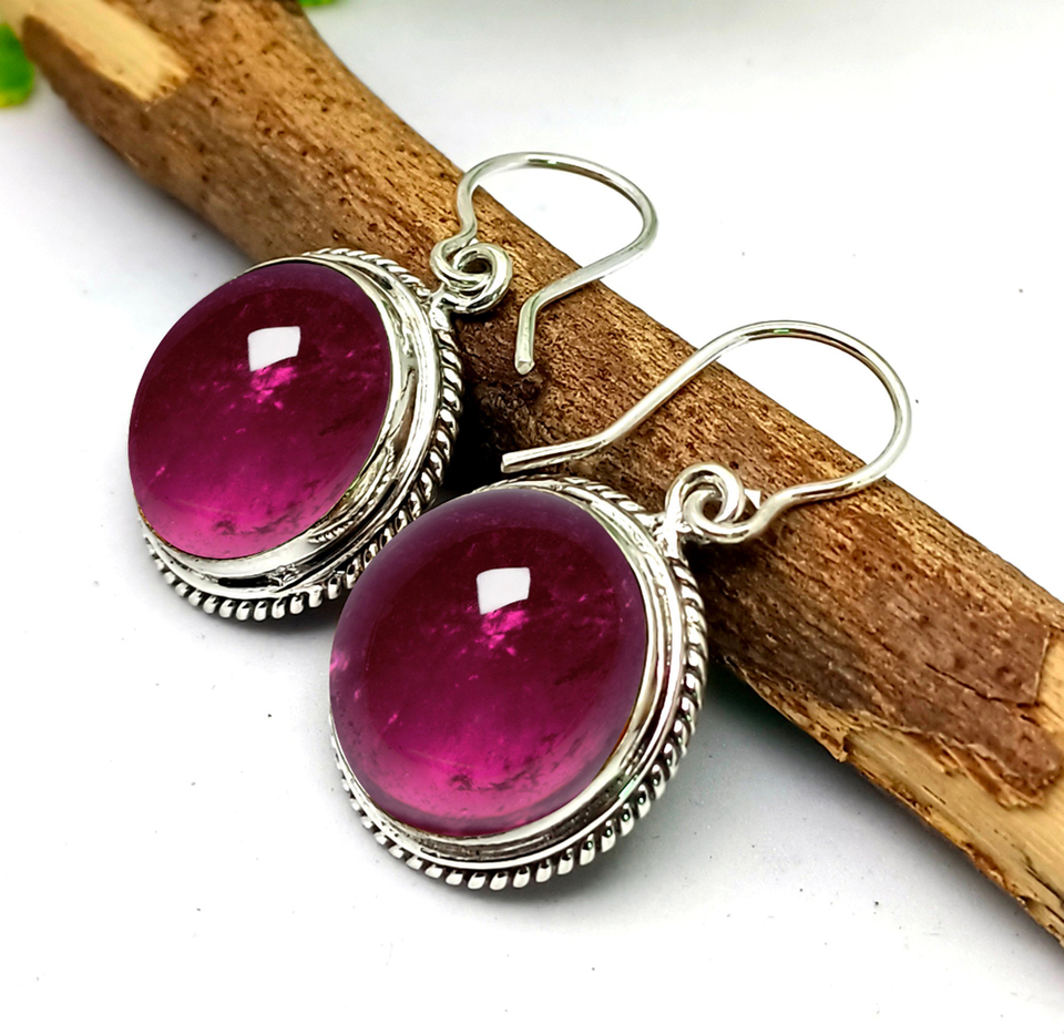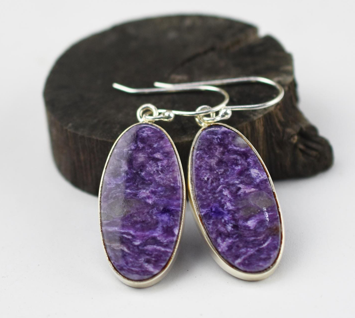 Handmade Sterling Silver Charoite Gemstone Awesome Dangle Earring Bezel Setting Oval Shape 10X14MM For Anniversary Gift Women