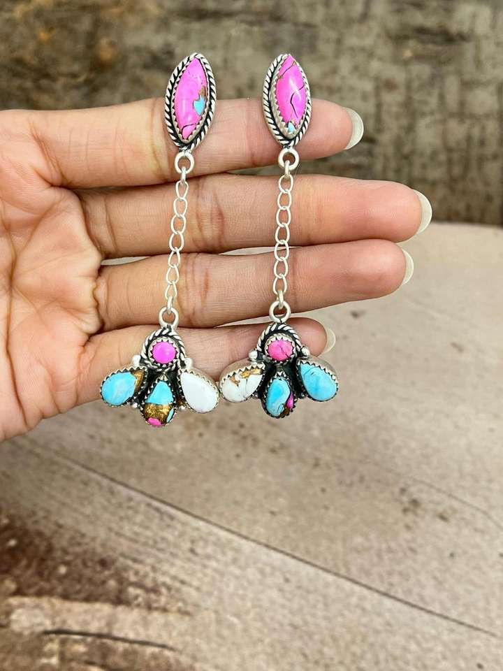 Handmade Sterling Silver Cotton Candy Turquoise Dangle Earrings Unique Gemstone Jewelry Gift For Her Today