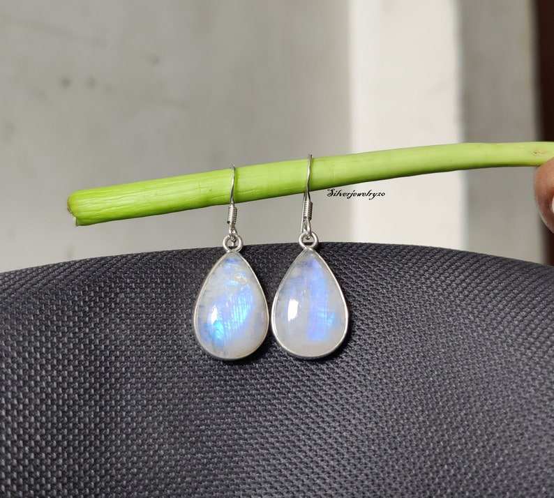 Handmade Sterling Silver Drop Earrings with Rainbow Moonstone-Trendy Wedding & Party Gift for Women