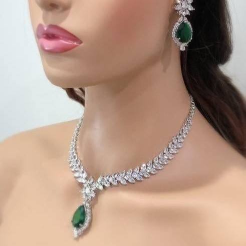 Handmade Sterling Silver Emerald Necklace Earrings Set CZ Gold Plated Statement Jewelry for Bridal Engagement Gift Cute Style