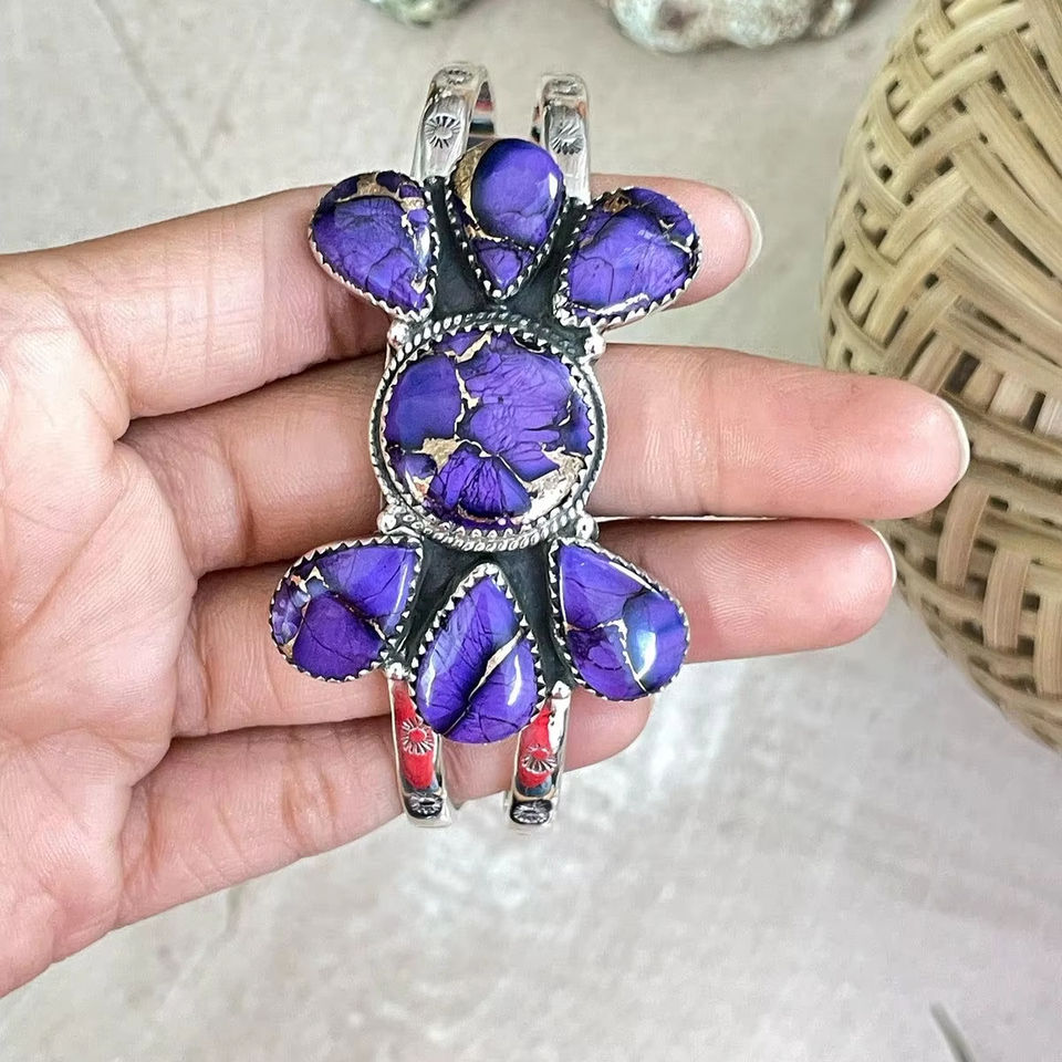 Handmade Sterling Silver Grape Dahlia Cuff Bracelet