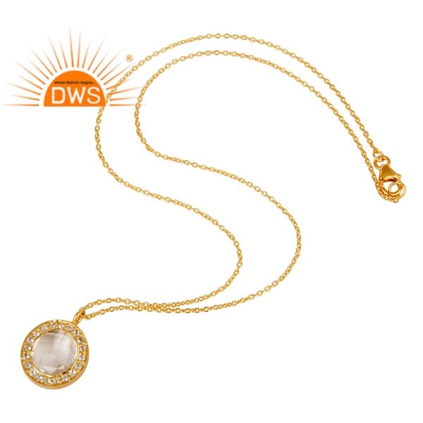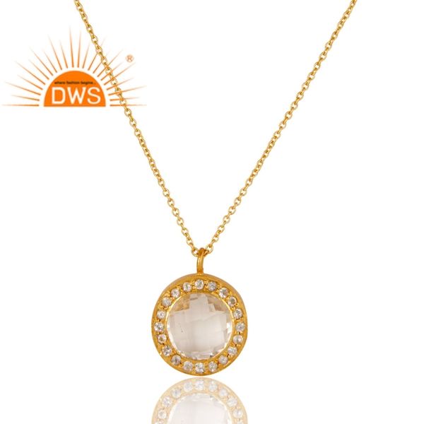 Handmade Sterling Silver Natural White Topaz and Crystal Quartz Gemstone Pendant Necklace Jewelry Manufacturer