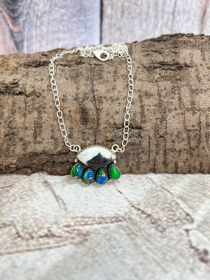 Handmade Sterling Silver Necklace With White Buffalo And Peacock Dahlia Gemstones Jewelry Gift For Women