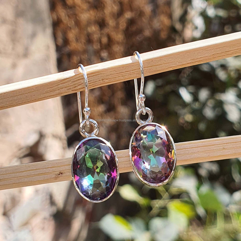 Product Name:Mystic Topaz Oval Cut Earrings for Women
