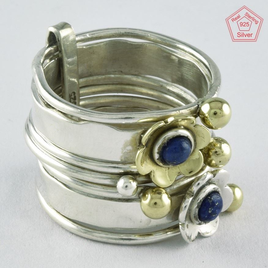Handmade Sterling Silver Wider Stack Ring with Doublet Lapis Stone 925 from Jaipur INDIA-Fine Jewelry by Local Manufacturer