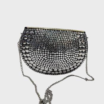 Handmade Stone Clutch Bag with Metal Silver Evening Ready to Ship Fashionable Resin Brass Mosaic Zipper Closure