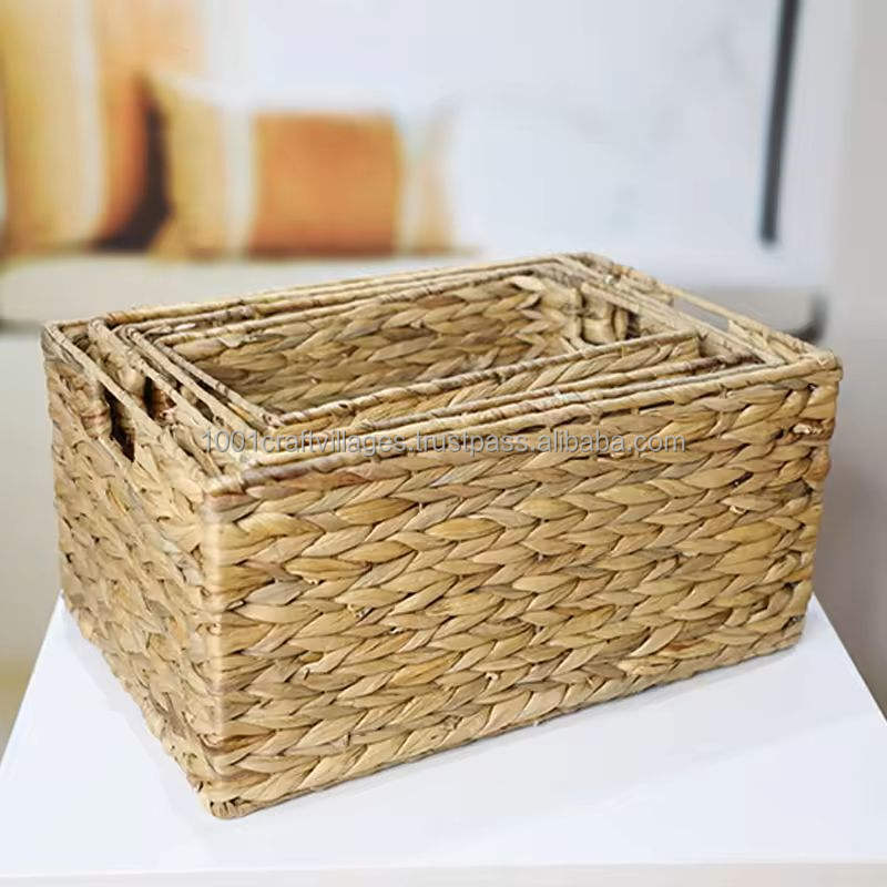 Sustainable Water Hyacinth Woven Basket Handmade Natural Material for Home Decor Storage and basket Containing Cloths