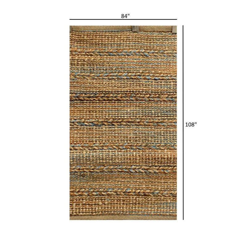 Handmade Striped Jute Area Rug Brown/Blue Natural Fiber Turned Tool Product
